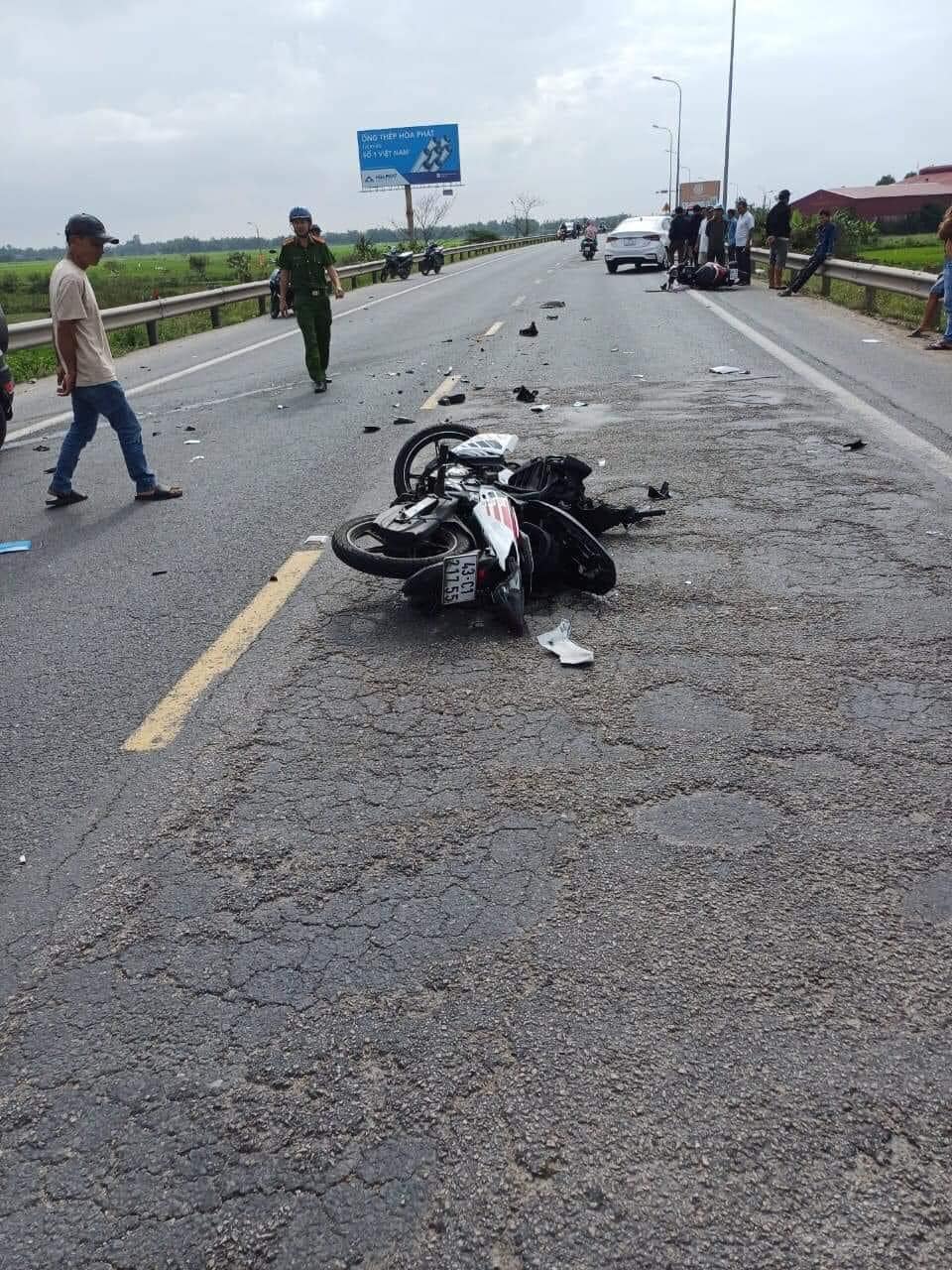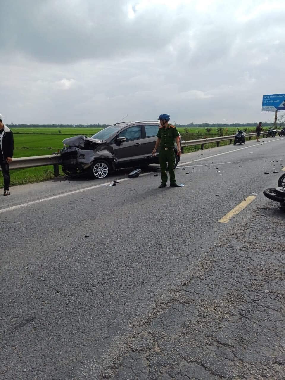 Hậu quả, 3 người đi trên xe máy bị thương được đưa vào bệnh viện cấp cứu, ô tô và 2 xe máy cùng bị hư hỏng. Tại hiện trường, mảnh vỡ của các phương tiện vương vãi khắp đường.