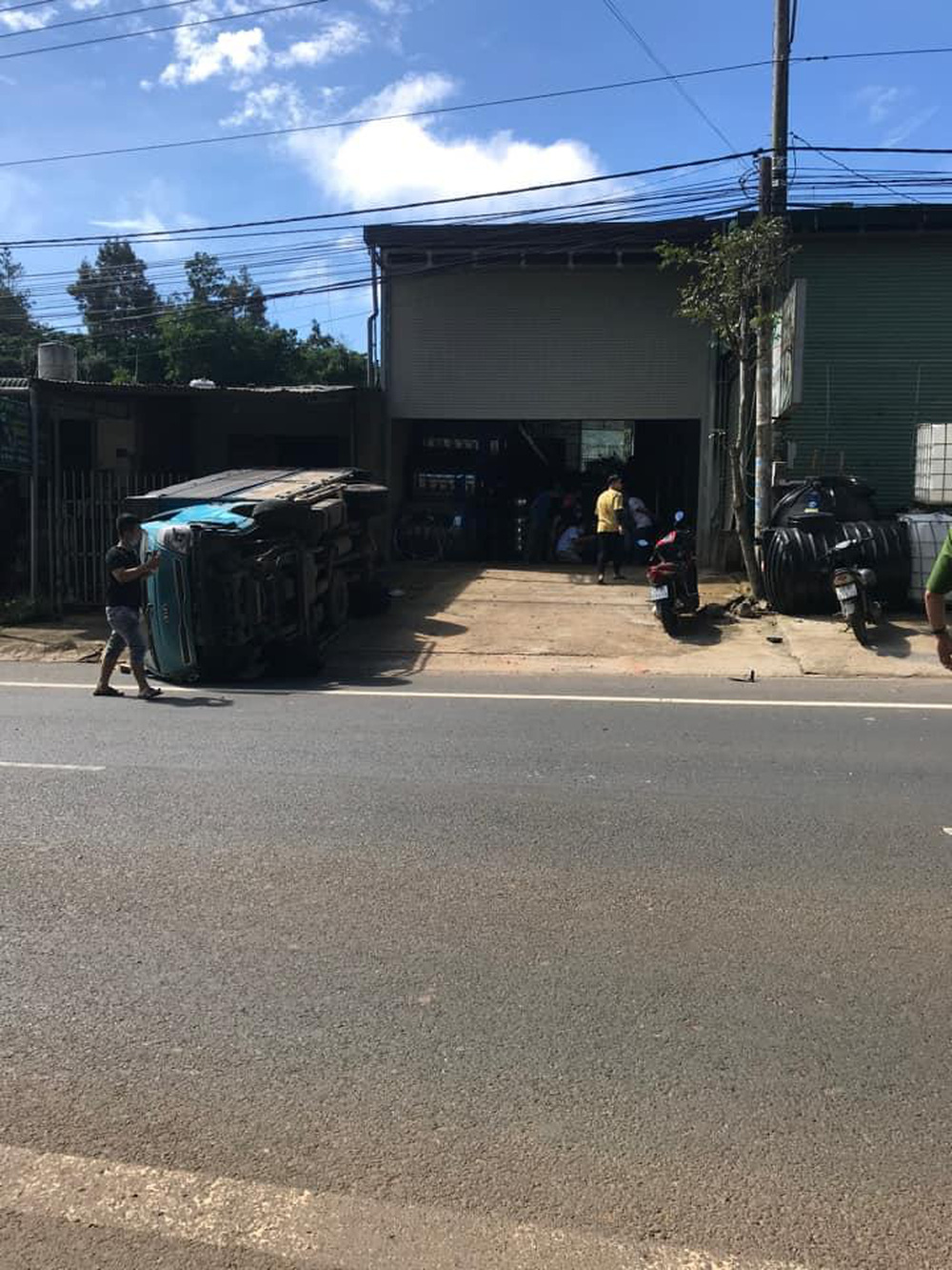 Sau va chạm, ô tô tải lật nghiêm giữa đường còn ô tô con lao vào nhà dân trước khi dừng lại. Tại hiện trường, nhiều người bị trọng thương đã được đưa đi cấp cứu, các phương tiện cùng nhà dân đều bị hư hỏng nặng.