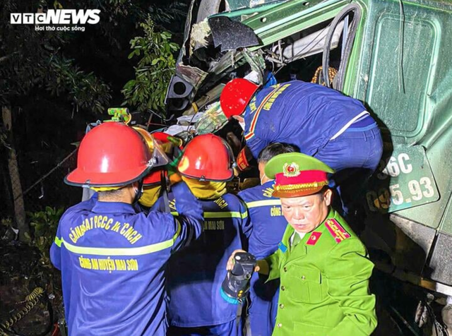 Sau đó, một tiếng rầm lớn phát ra, xe khách giường nằm cùng ô tô đầu kéo vỡ nát. Đứng cách 2 chiếc xe chỉ khoảng 20m, chị Nhung thấy có 2 người rơi từ xe khách xuống mặt đường nên vội vàng chạy lại, hô hoán bà con ra cứu người, đồng thời gọi điện báo công an.
