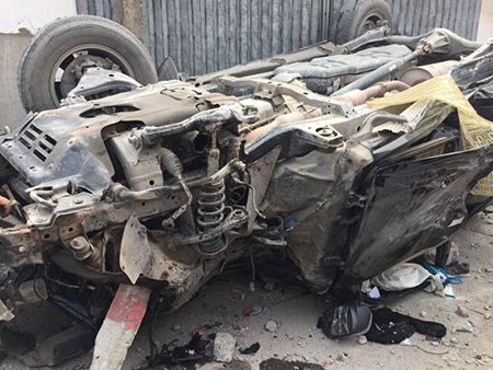Chiếc xe ô tô bị hư hỏng nặng. Ảnh: Otofun. |