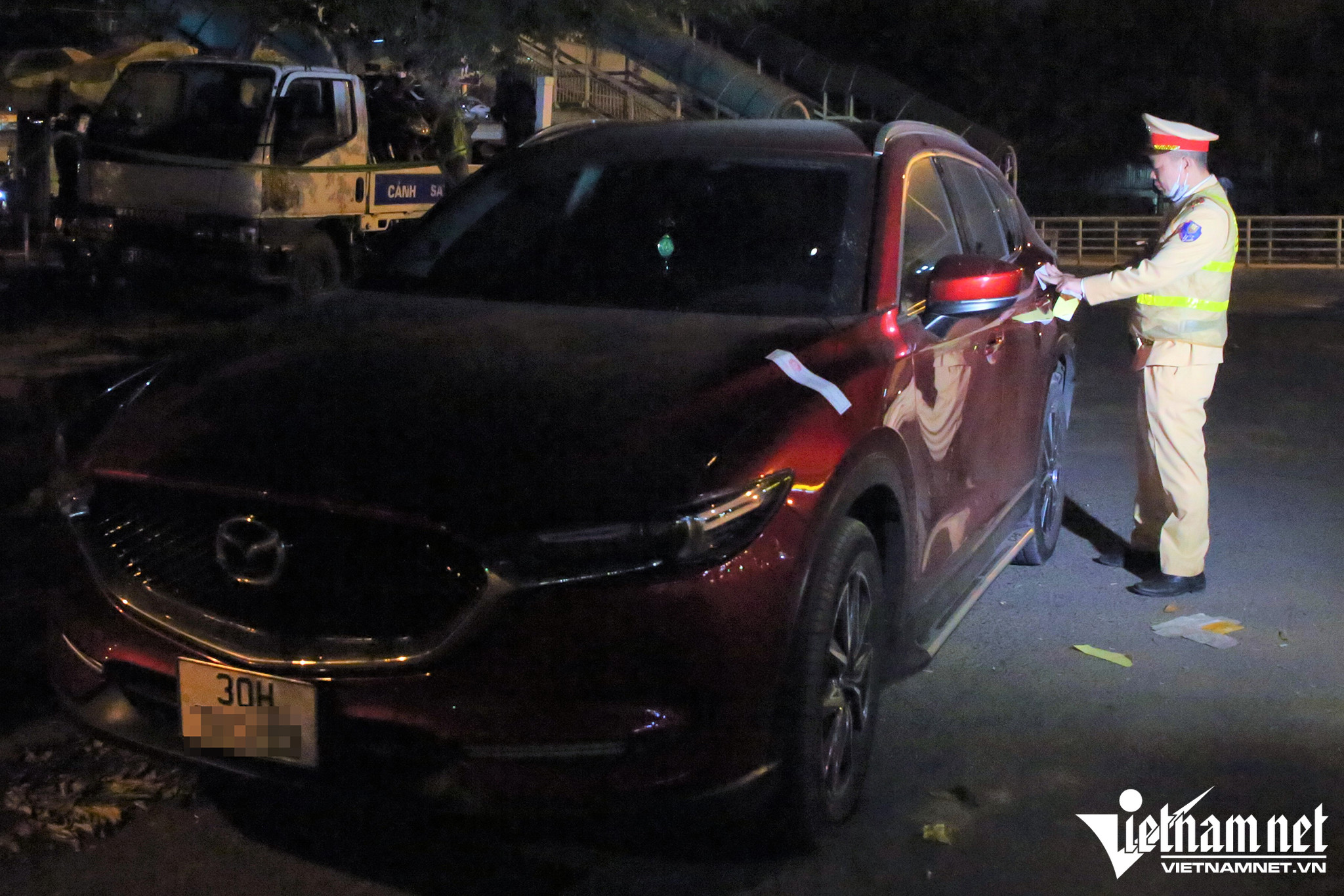 Tương tự, trường hợp tài xế N.H.Đ. (SN 1991, trú tại Hà Nội) lái ô tô BKS 30H-783.XX khi phát hiện chốt kiểm tra nồng độ cồn, người này đã điều khiển xe lao lên vỉa hè để tìm cách né tránh.