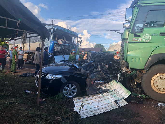 Tài xế kể khi xe đang chạy bình thường thì bất ngờ bị xe tải BKS 81H-027.60 lưu thông cùng chiều, phía sau tông mạnh vào đuôi xe. Sau đó xe tải dồn tới khiến xe con mất kiểm soát rồi bị đẩy sang làn đường ngược chiều tiếp tục tông vào xe tải BKS 47C-263.06 đang lưu thông.