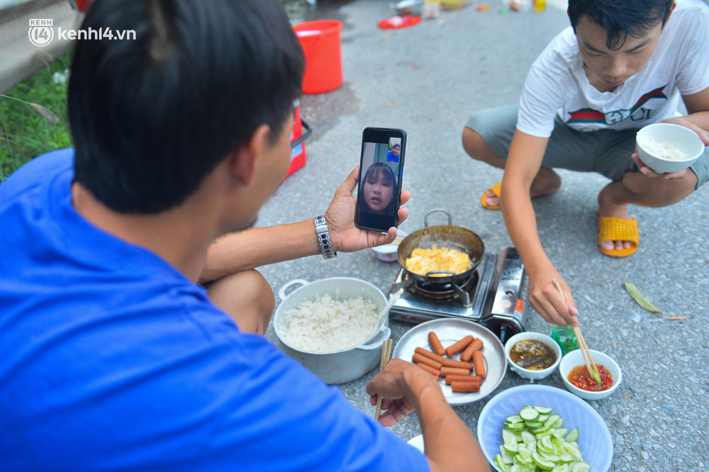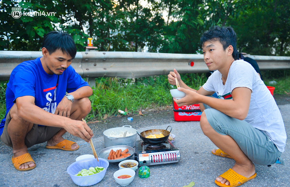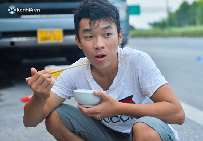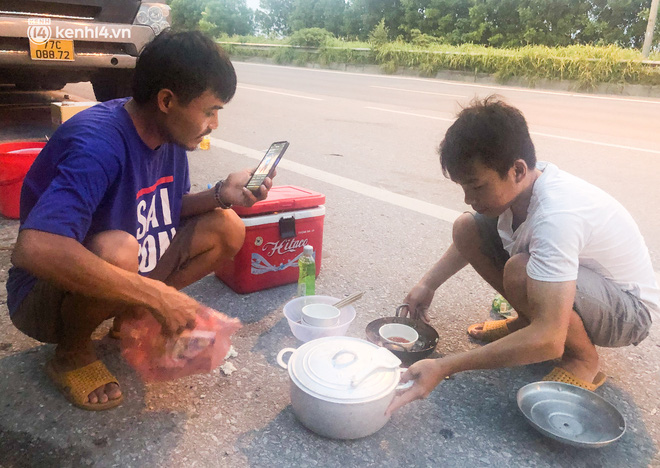 "Tôi xin đỗ ở ven đường trong lúc chờ đợi, còn ăn uống phải nhờ xe ôm và anh chủ cửa hàng gần đây mua hộ thức ăn để nấu ăn qua ngày. Mà lực lượng chức năng cũng cấm hết rồi, không đi đâu được nên họ mua hộ cho cái gì thì ăn cái đó.