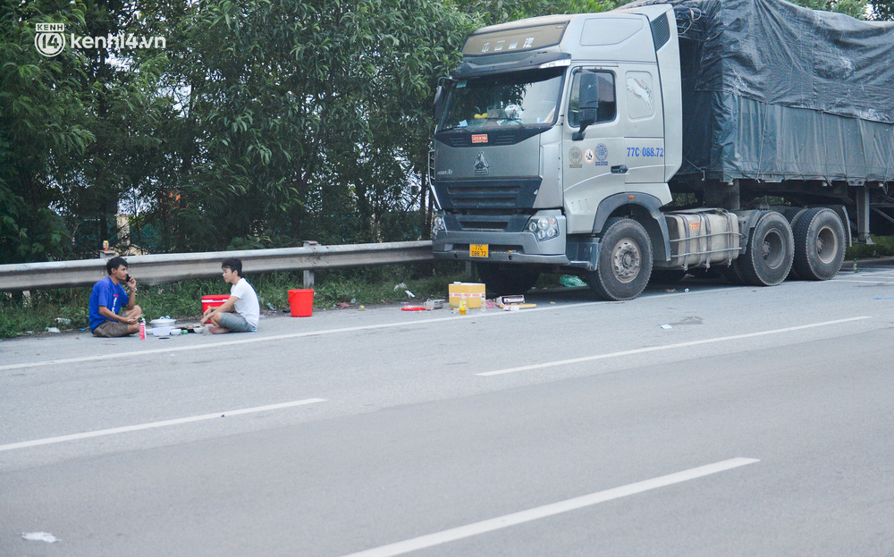 27/07/2021 14:22Tài xế container nấu ăn bên lề đường, chờ giấy thông hành để vào Hà Nội: 'Tôi bị kẹt ở đây 5 ngày rồi chưa chuyển hàng được'