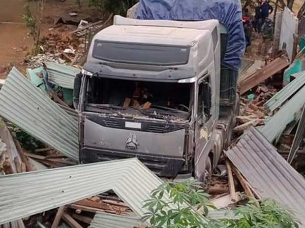 Thời điểm trên xe đầu kéo kéo theo rơmooc BKS 82C – 018.05 lưu thông hướng Đà Nẵng – Kon Tum thì bất ngờ lao vào làm sập hoàn toàn nhà cấp 4 của ông V.B. (SN 1952) trú địa phương.