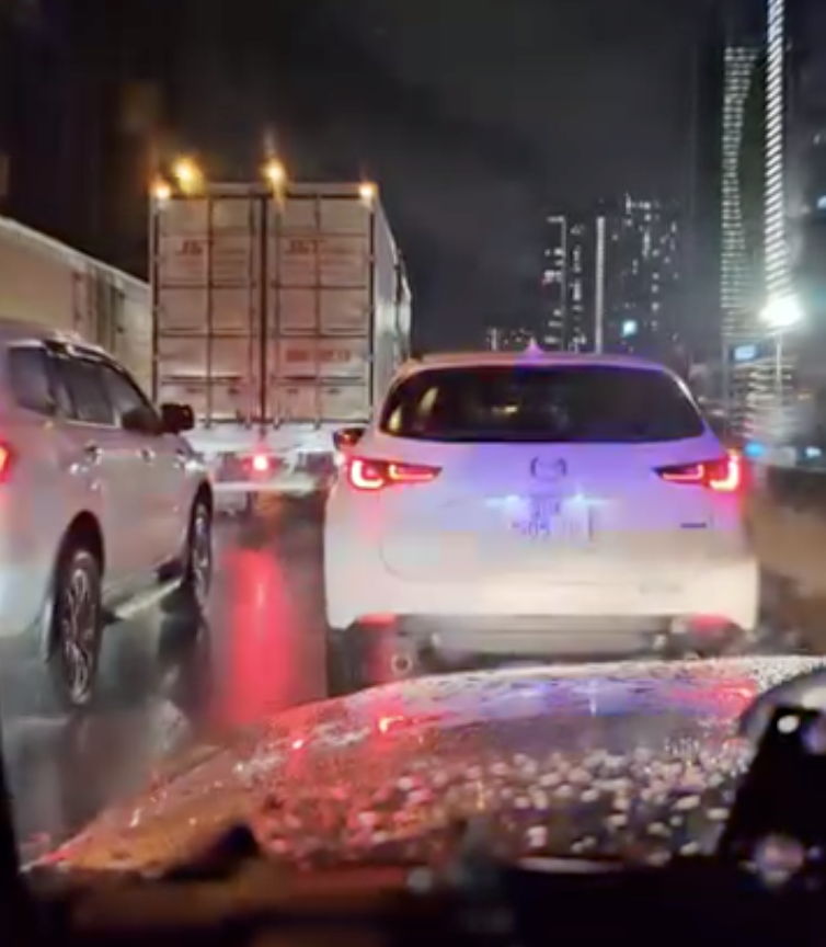 Trước đó, trên mạng xã hội xuất hiện đoạn clip ghi lại cảnh ô tô nhãn hiệu Mazda biển số 30K-505.XX, đi vào làn khẩn cấp đường vành đai 3 trên cao.