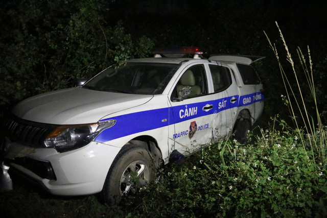 Cú va chạm mạnh đã khiến 2 phương tiện văng xuống ven đường, rất may không có ai bị thương. Tại hiện trường, cả 2 chiếc xe bị hư hỏng, phần sườn bên trái của xe tuần tra CSGT móp méo.