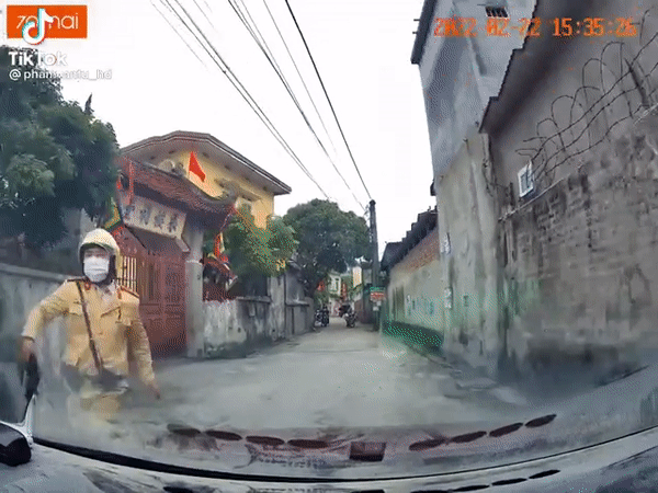 Theo hình đoạn clip trích xuất từ camera hành trình của ô tô, khi đang lưu thông trên đoạn đường hẹp thì bị CSGT yêu cầu dừng xe để kiểm tra. Tuy nhiên, thay vì chấp hành thì tài xế lại điều khiển xe lùi lại và bỏ chạy.