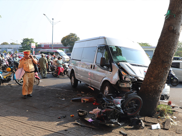 6h sáng ngày 4/4, ô tô 16 chỗ BKS tỉnh Đồng Nai lưu thông trên đường Trường Chinh theo hướng Hóc Môn đi trung tâm TP.HCM. Khi ô tô chạy đến đoạn còn cách mũi tàu Trường Chinh- Cộng Hoà khoảng 100m thì bất ngờ phương tiện đâm liên tiếp hai xe máy.