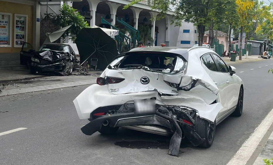 Ghi nhận tại hiện trường, hai ô tô bị biến dạng phần đầu và đuôi xe, hư hỏng nghiêm trọng. Ngoài người phụ nữ đi xe máy, tài xế và người ngồi trên xe ô tô gây tai nạn cũng bị thương nặng, được người dân đưa đi cấp cứu.