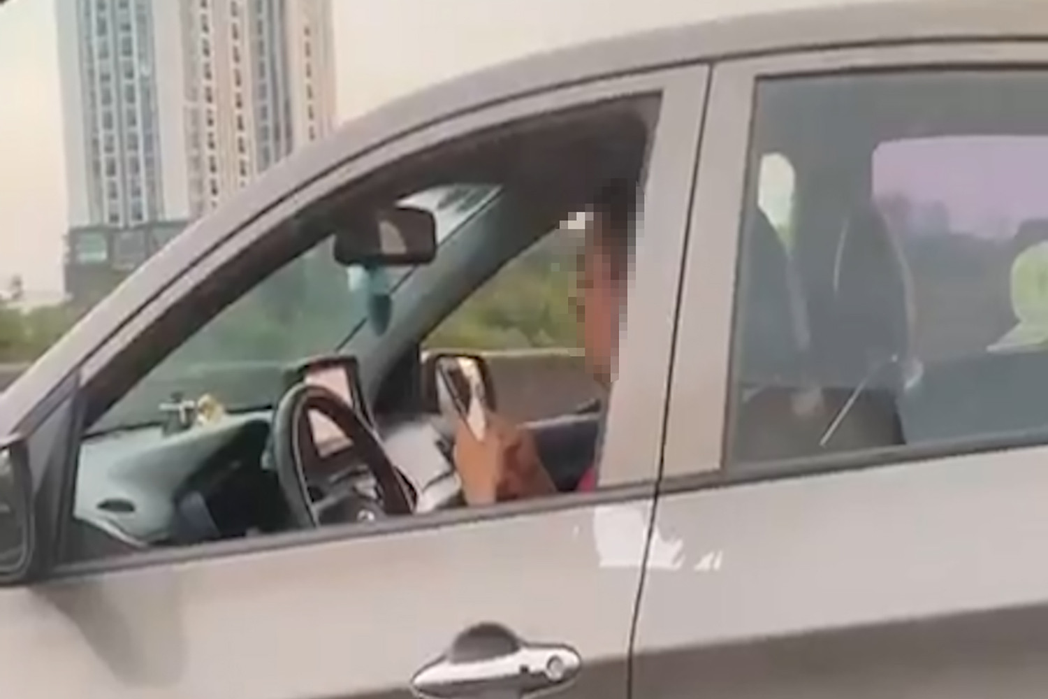 Sáng 2/7, đoạn clip dài gần 1 phút ghi lại cảnh nam tài xế buông cả hai tay dùng điện thoại di động khi đang điều khiển ô tô đi trong làn khẩn cấp tại đường Vành đai 3 trên cao (Hà Nội) được chia sẻ trên mạng xã hội.