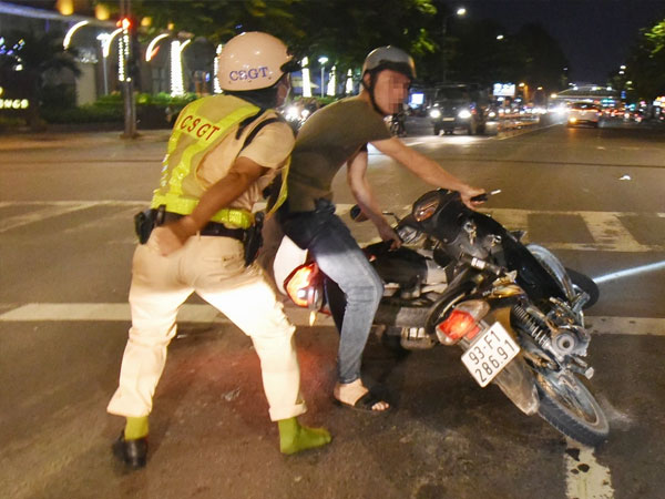 Lúc 20h15, ông Đ.C.D. (59 tuổi, quê ngụ TP Dĩ An, Bình Dương) lái xe máy trên đường Hoàng Minh Giám có biểu hiện không tỉnh táo, liền bị CSGT mời vào lề đường kiểm tra.