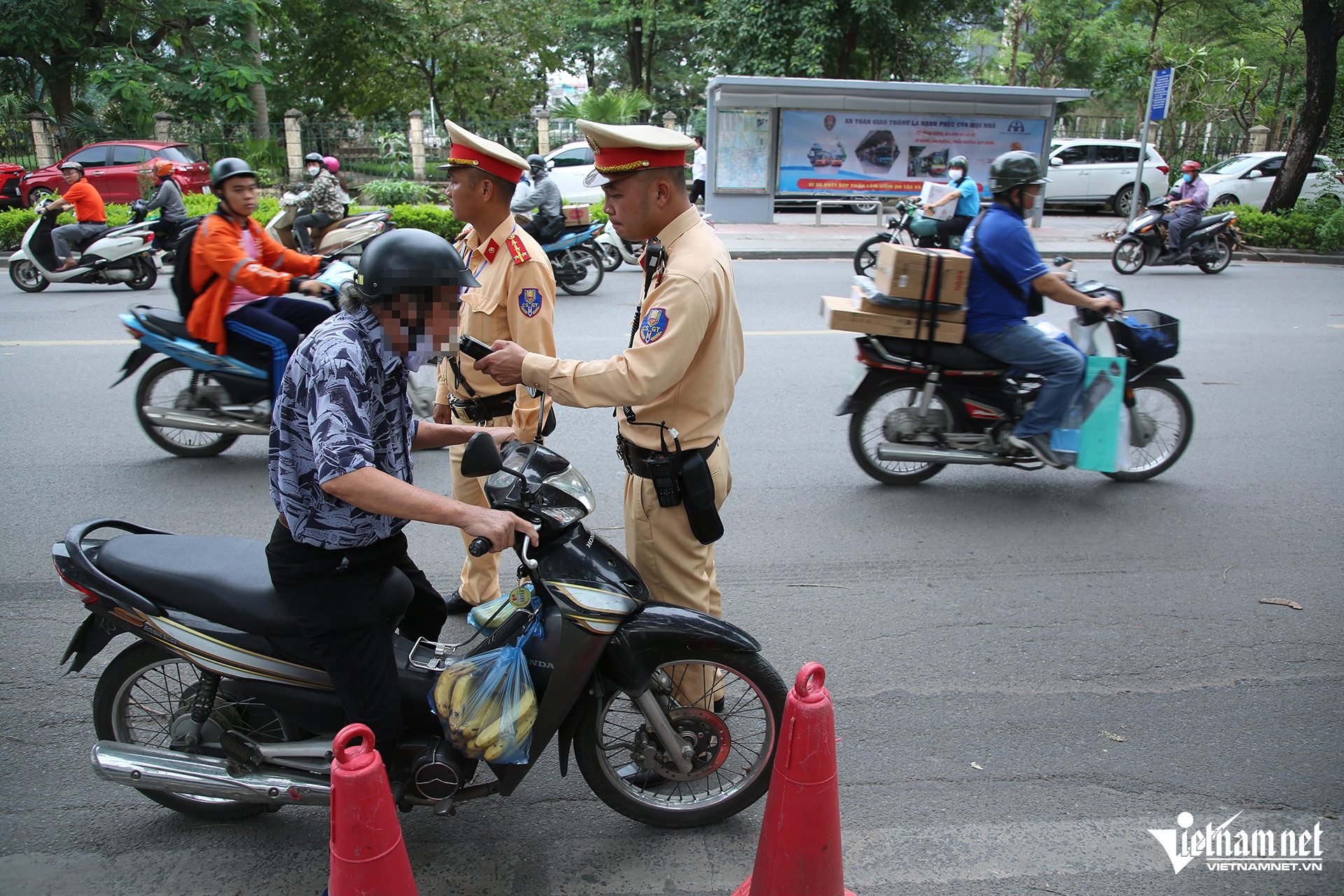 Tổ CSGT đã lập biên bản xử phạt hành chính với ông H. với lỗi: Người điều khiển mô tô, xe máy trên đường mà trong máu hoặc hơi thở có nồng độ cồn vượt quá 80 miligam/ 100 mililít máu hoặc vượt quá 0,4 mg/L khí thở. Với lỗi này, ông H. sẽ bị phạt 7 triệu đồng, tước giấy phép lái xe 23 tháng và tạm giữ phương tiện 7 ngày.