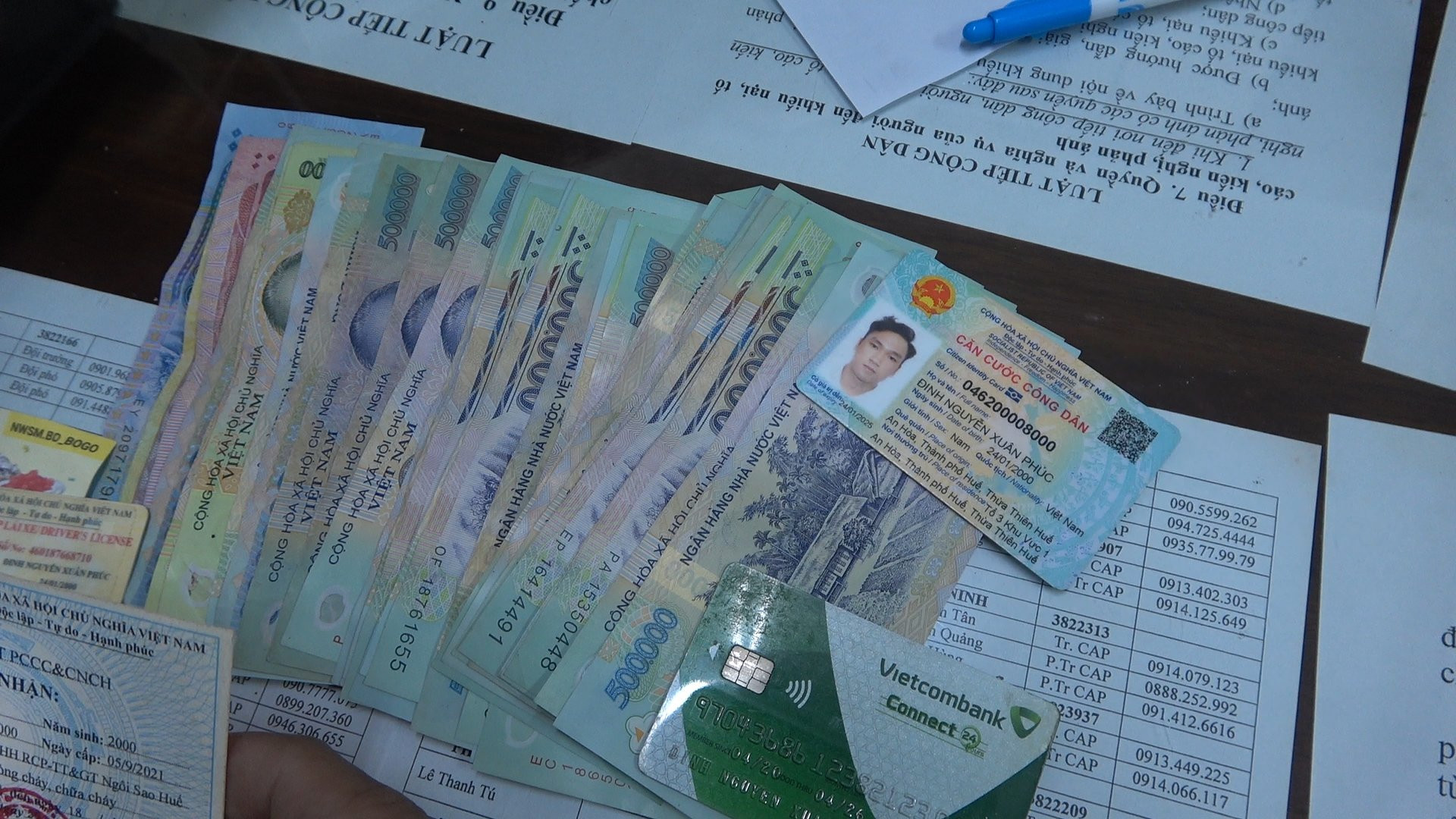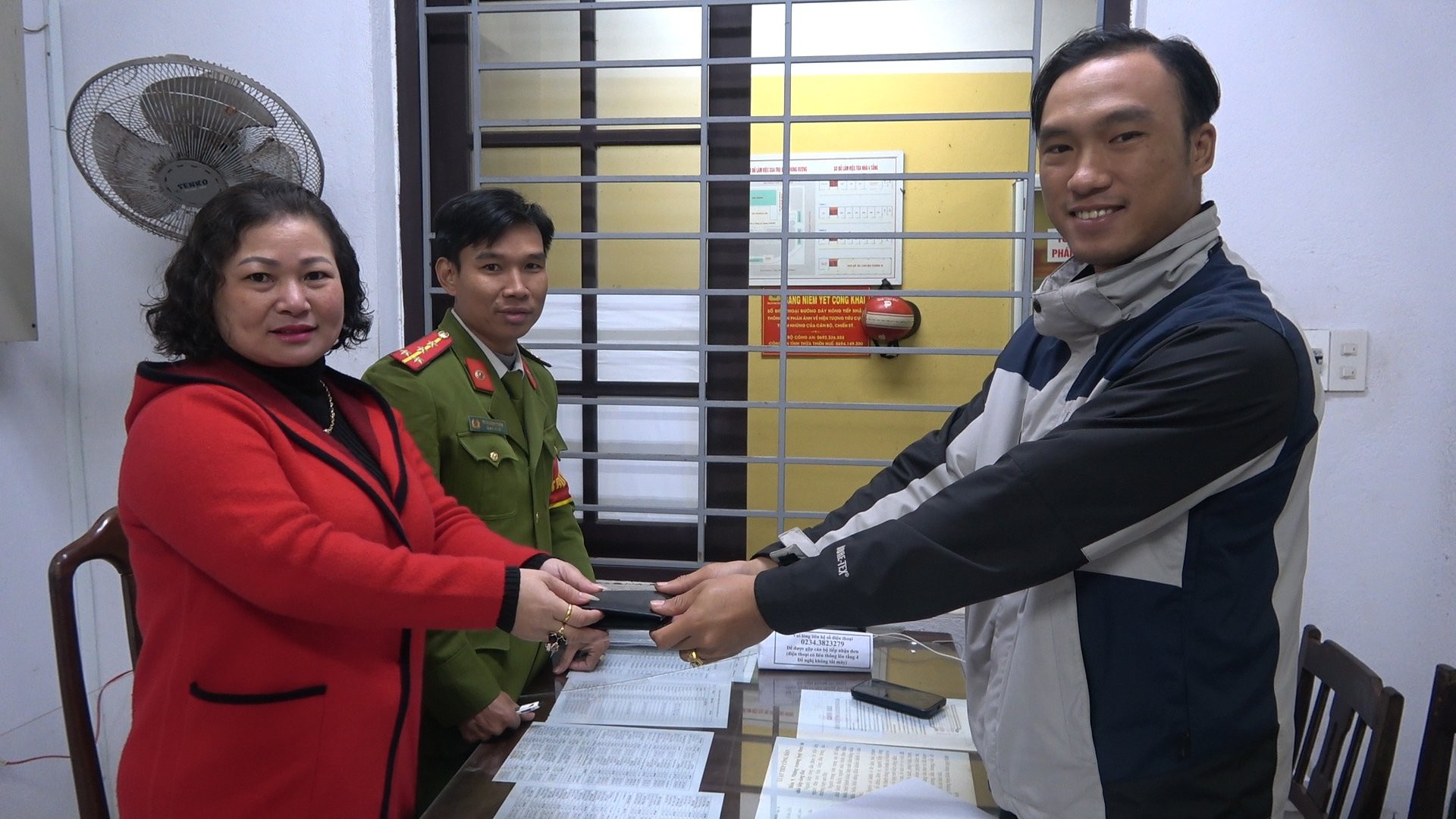 Gần 1 giờ sau, căn cứ vào các giấy tờ liên quan, Công an TP Huế xác định người đánh rơi ví tiền là anh Phúc nên mời người này đến trụ sở để trao trả tài sản.