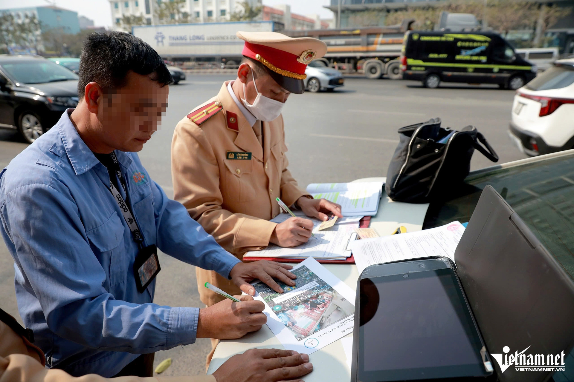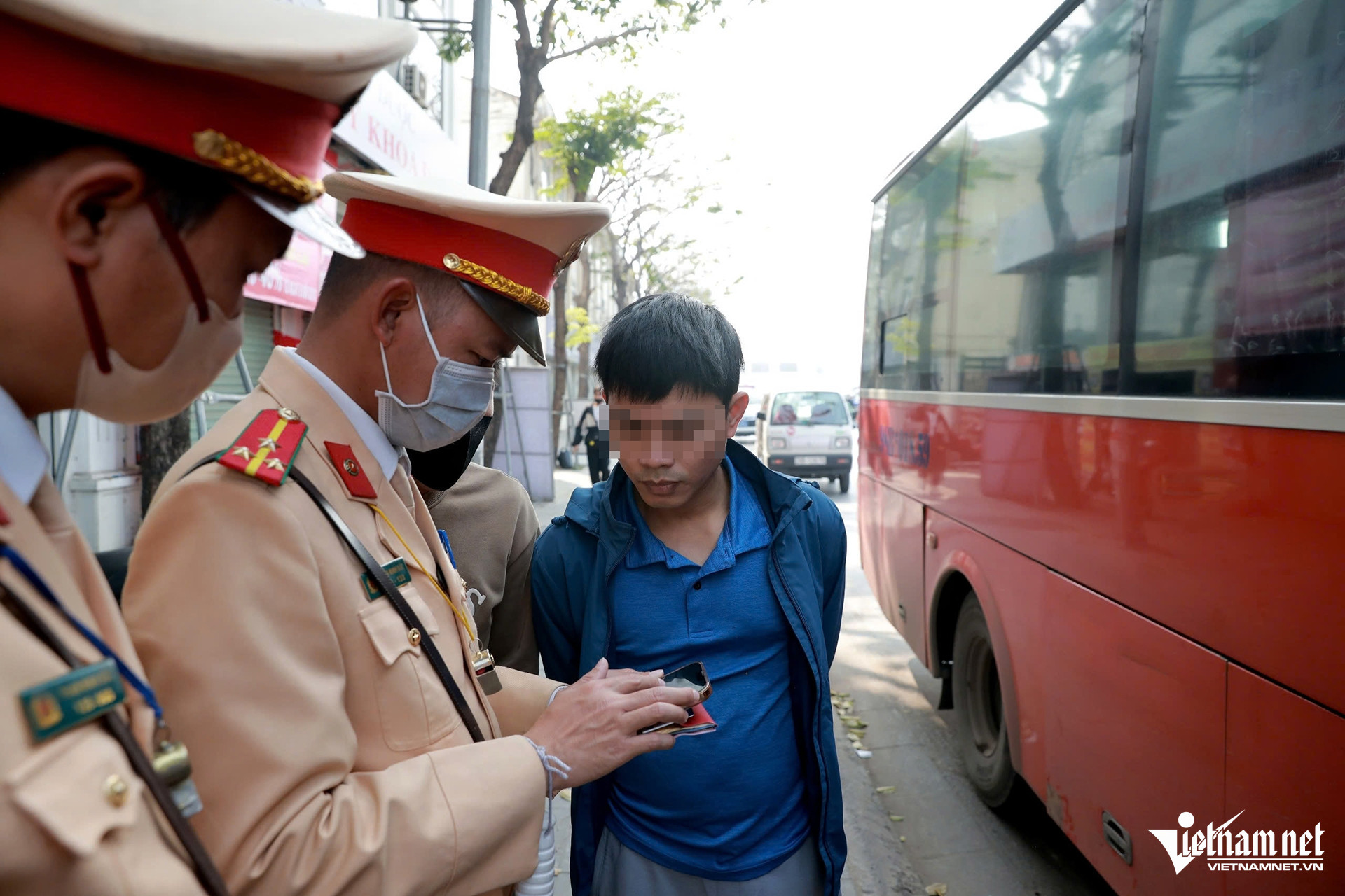 Tài xế N.V.H. (37 tuổi) điều khiển xe khách chạy tuyến Mỹ Đình - Bắc Giang bị lập biên bản về lỗi không thắt dây an toàn khi lái xe.