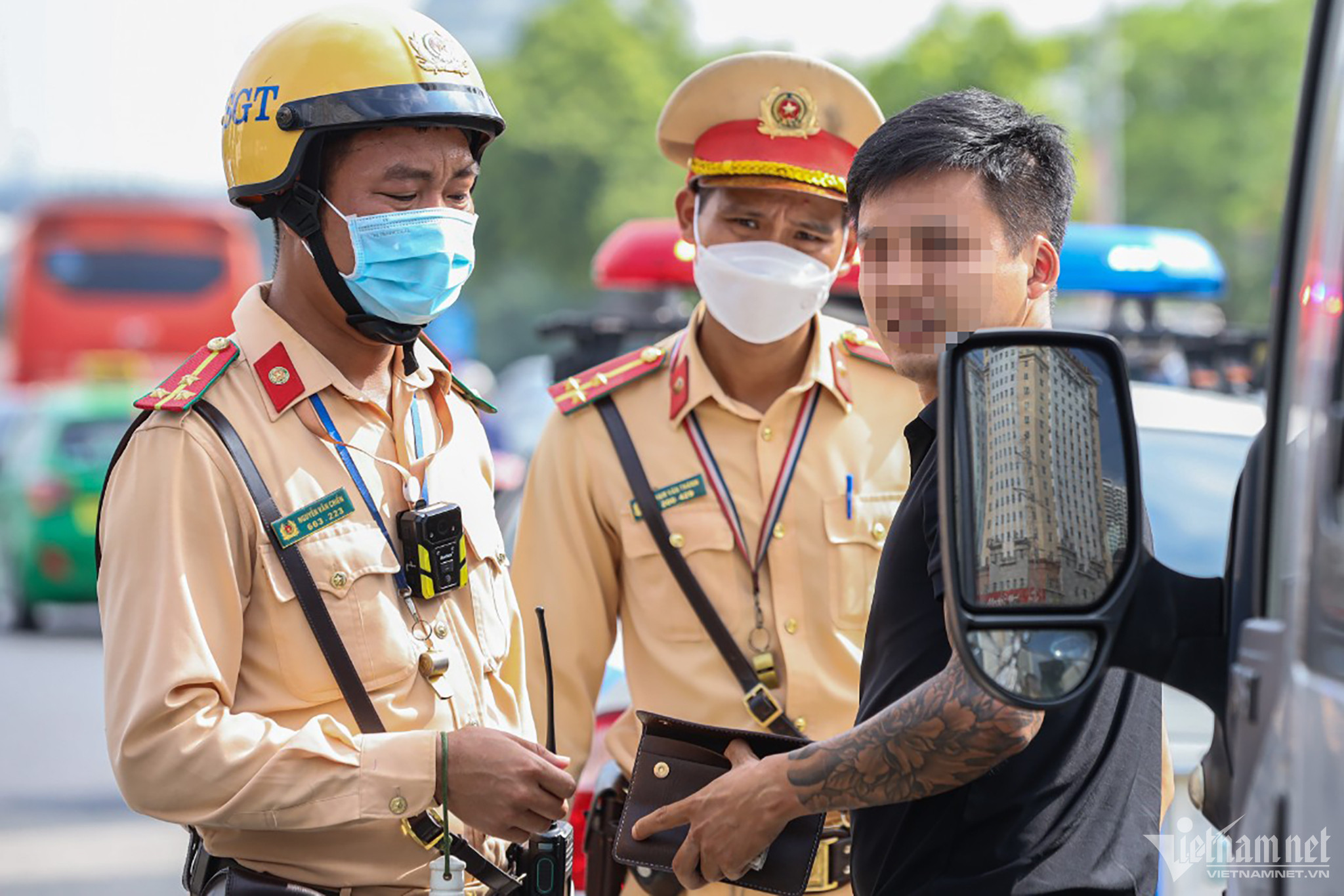 Sau khi cho xem hình ảnh vi phạm, tài xế N. "tâm phục khẩu phục" và chấp hành xuất trình giấy tờ xe.