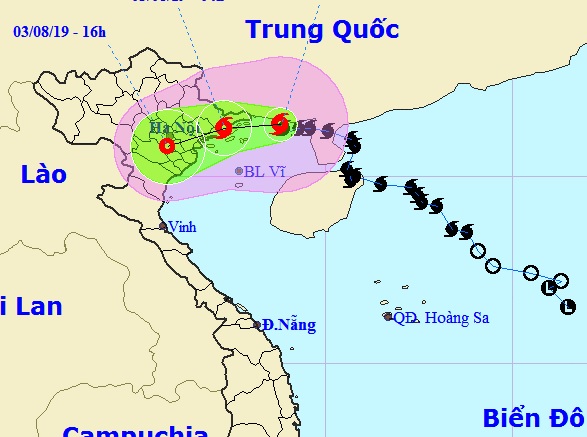 Tin mới nhất từ Trung tâm Dự báo khí tượng thủy văn quốc gia, lúc 16 giờ chiều nay 2-8, vị trí tâm bão số 3 ở vào khoảng 21,4 độ Vĩ Bắc; 108,8 độ Kinh Đông, cách Móng Cái (Quảng Ninh) khoảng 90 km, cách Hải Phòng khoảng 250 km, cách Nam Định khoảng 310 km. Sức gió mạnh nhất cấp 9 (75-90 km/h), giật cấp 12.