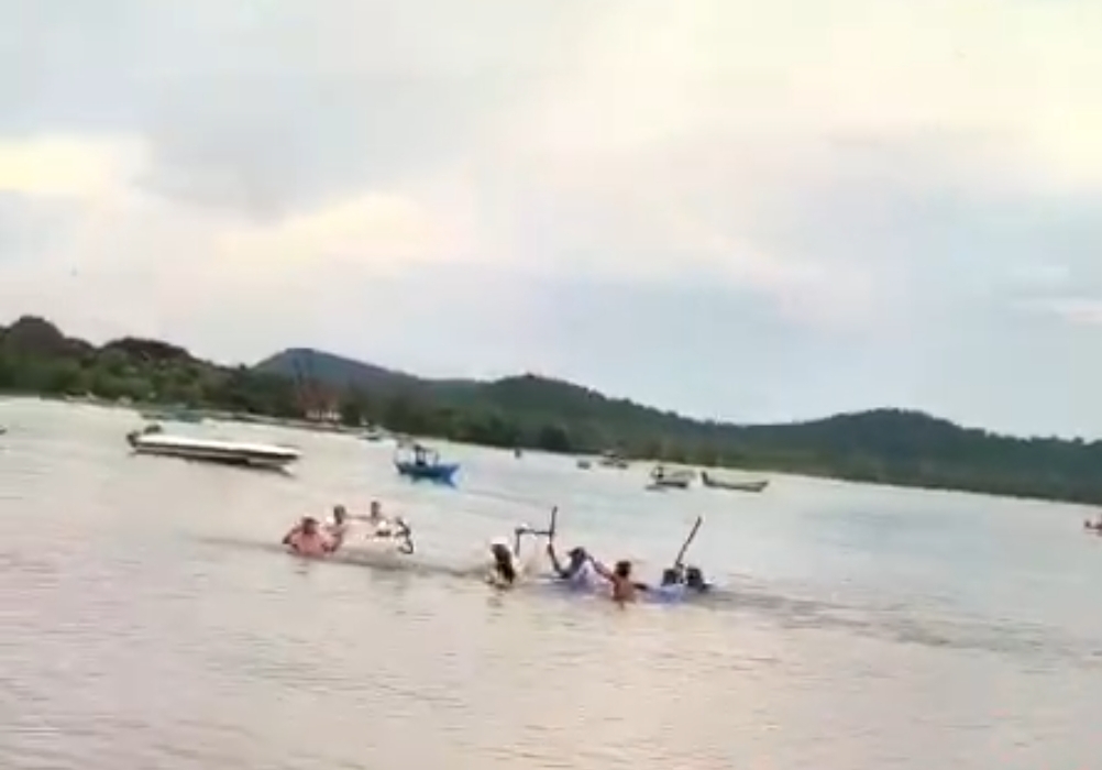 Nhiều bảo vệ đã cầm gậy lao xuống biển rượt đánh những người giăng lưới khiến những người này chạy lên bờ. Tuy nhiên, nhóm bảo vệ này cùng với một nhóm khách tiếp tục rượt đánh khiến 2 du khách bị gãy tay, đang được điều trị tại Trung tâm Y tế TP Phú Quốc.