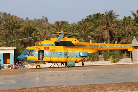 | CTV của chúng tôi từ đảo Phú Quý cho biết, lúc 17 giờ chiều nay trực thăng của Không quân VN (ảnh) đã đáp xuống sân bay Phú Quý để tiếp nhiên liệu. Chiếc máy bay này có nhiệm vụ bay tìm kiếm hai chiếc máy bay rơi nói trên suốt từ 12 giờ trưa đến giờ nên hết nhiên liệu. Hiện giờ máy bay đã cất cánh khỏi sân bay Phú Quý tiếp tục việc tìm kiếm - Ảnh: Thọ Châu |