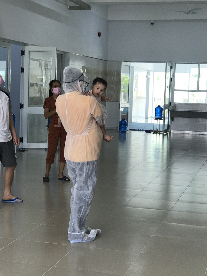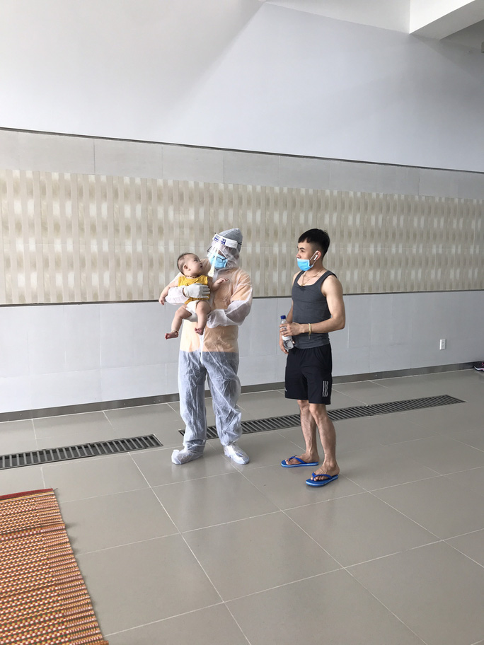 Chia sẻ với chúng tôi, bác sĩ Huỳnh Minh Chín cho biết đây là đợt tiếp nhận cách ly đặc biệt nhất từ trước tới nay bởi trong 53 trẻ em dưới 1 tuổi, có bé chỉ mới 3 tháng tuổi. "Trước khi tiếp nhận các bé, chúng tôi cứ nghĩ các trường hợp cách ly cũng giống những lần trước, tất cả là người lớn. Trời khuya, ai cũng đã thấm mệt nhưng khi thấy các bé đi cùng người quen trên các chuyến xe về trung tâm cách ly thì phương án, kế hoạch tiếp nhận cách ly được thay đổi. Chúng tôi quyết định thành lập một khu cách ly tập trung riêng giành cho các bé", bác sĩ Huỳnh Minh Chín nhớ lại.