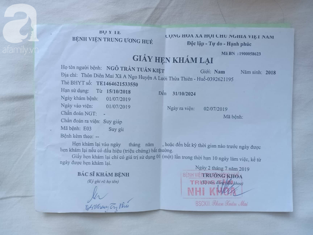 Bé Kiệt là con thứ 2 của vợ chồng chị Nhân. Trước đứa trẻ còn một chị gái 6 tuổi, đang học lớp 1. Kinh tế phụ thuộc vào một sào ruộng, để có tiền trang trải cuộc sống, ai thuê phụ hồ, vác keo, đội đá, phu gạch, bơm thuốc trừ sâu, diệt cỏ… vợ chồng chị Nhân cũng đều nhận làm.