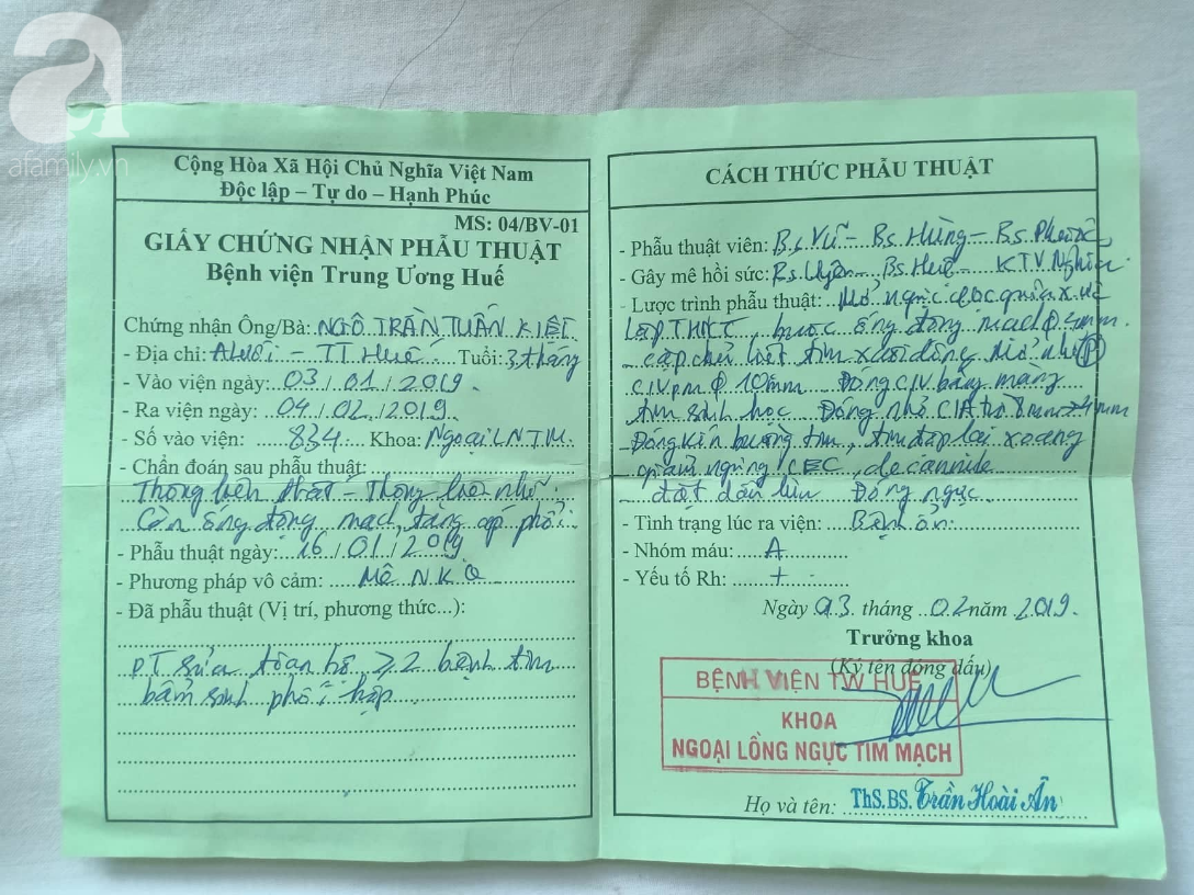Ngay từ lúc cất tiếng khóc chào đời, sự sống của bé Ngô Trần Tuấn Kiệt (11 tháng tuổi, con trai chị Nhân) phụ thuộc vào bệnh viện. 3 tháng tuổi, bé Kiệt đã phải trải qua ca phẫu thuật tim. Hiện bé Kiệt chỉ nặng 8kg, chưa biết bò, chưa biết ngồi dù đã gần 1 tuổi.