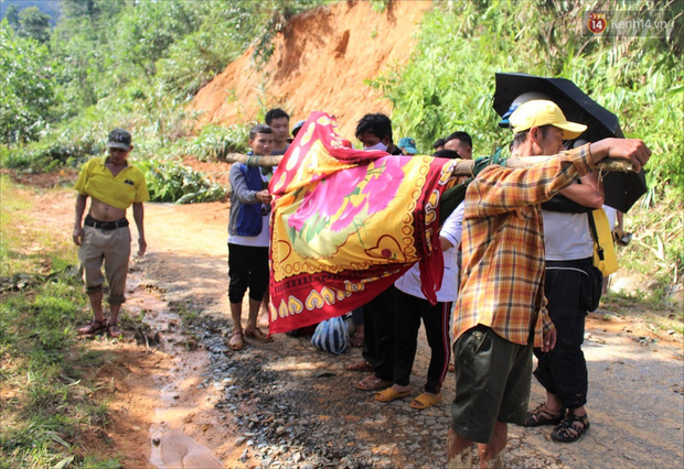 Đưa tay lau vội dòng nước mắt đang lăn dài trên gò má, Hoà chia sẻ, em đang đi làm thêm tại TP. Tam Kỳ (Quảng Nam) thì nhận được hung tin cả đại gia đình mình bị sạt lở núi vùi lấp. Chết lặng vài phút, Hoà cố trấn tĩnh để chạy xe máy về quê, nhưng khi còn cách ngôi làng mình sinh sống khoảng gần 16 km nữa thì gặp điểm sạt lở nên không thể di chuyển được nữa.