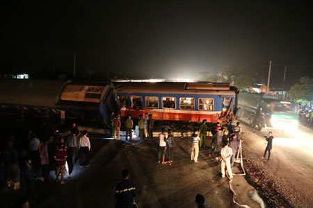11/03/2015 14:17Tàu hỏa đâm đứt đôi ôtô, nhiều toa trật khỏi đường ray