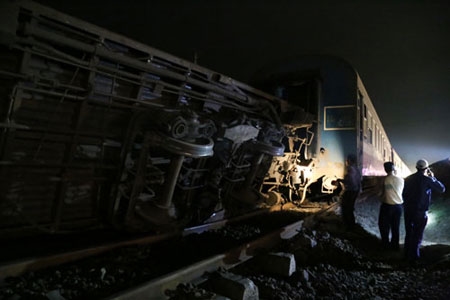 Vụ tai nạn khiến 3 toa tàu bị trật khỏi đường ray, hàng trăm hành khách hoảng loạn. Ảnh: Hoàng Táo. |