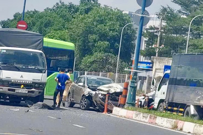 Ngày 4-11, lực lượng chức năng TP Thủ Đức (TP HCM) đang điều nguyên nhân vụ tai nạn giữa 3 ô tô.