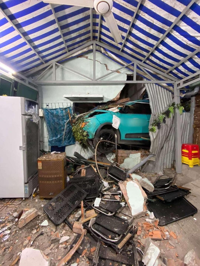 Vụ tai nạn khiến phần khu vực bếp phía sau của căn nhà cấp 4 đổ sập. Ngoài ra, quán nước ở bên cạnh cũng bị ảnh hưởng do các khối gạch tường văng sang, trúng vào đồ gia dụng, máy móc, tủ lạnh.