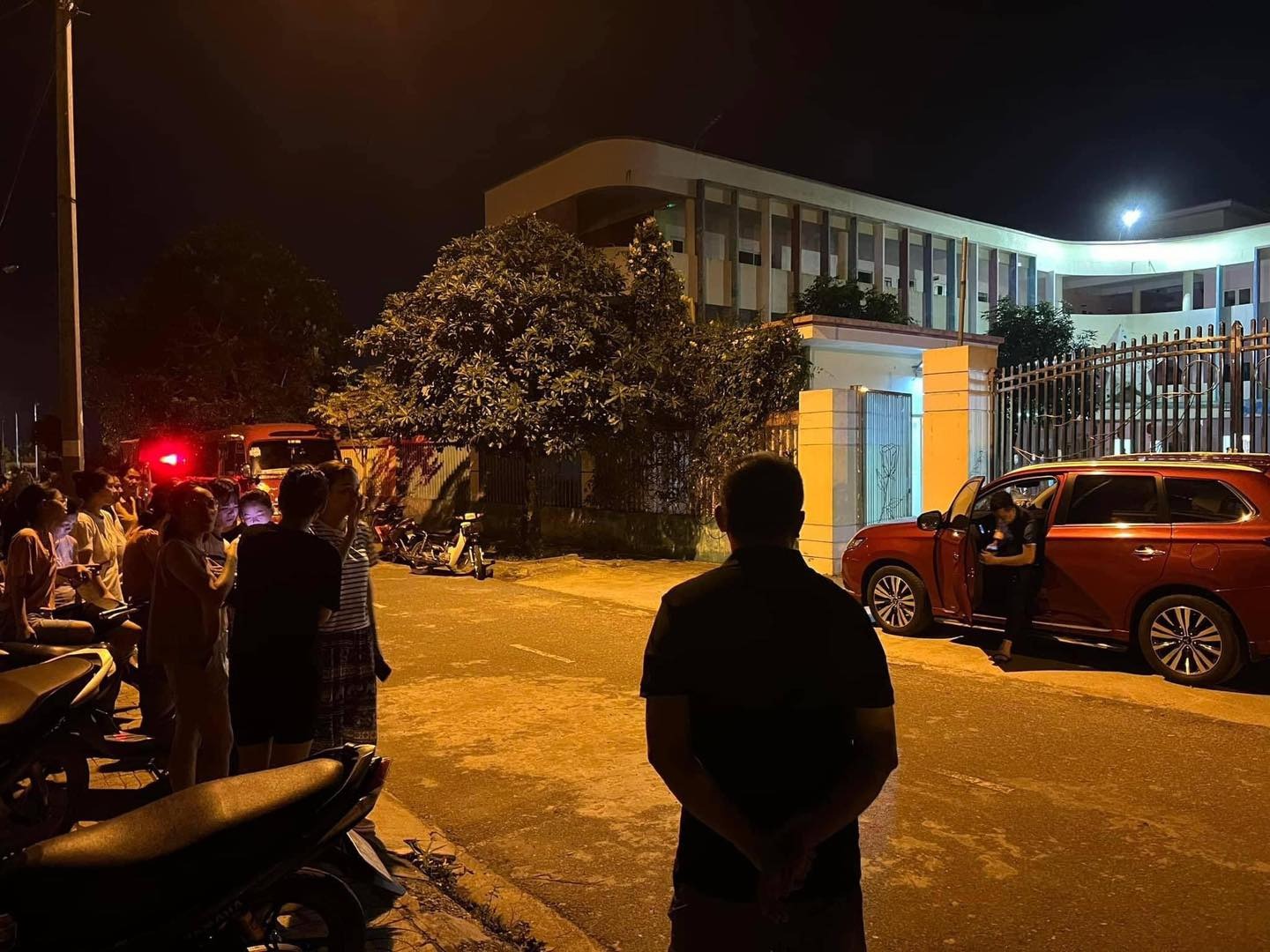 Trong khi đó, có mặt tại trước cổng trường vào lúc gần 19h cùng ngày, các phong viên đã ghi lại được hình ảnh ngôi trường đã đóng kín cổng, một số người dân, phụ huynh tập trung phía bên ngoài đường.