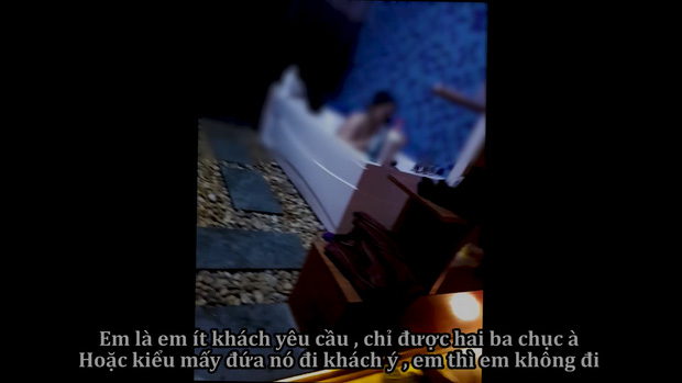 Khi được hỏi về thu nhập khi làm việc tại đây, cô gái cũng thật thà cho biết: "Mấy người giỏi giỏi thì người ta mới làm được thế thôi. Cái kiểu là khách yêu cầu nhiều thì một tháng được 50 triệu thì có. Em là em ít khách yêu cầu, chỉ được hai ba chục à. Hoặc mấy đứa nó đi khách ý, em thì em không đi".