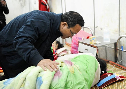 Phó chủ tịch Ủy ban ATGT Quốc gia Khuất Việt Hùng thăm các nạn nhân vụ tai nạn xe khách. Ảnh: Việt Hùng. |