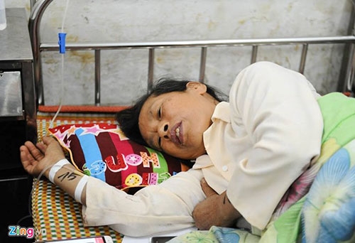 Bà Nguyễn Thị Chắt vẫn chưa hết sợ hãi dù được các bác sĩ điều trị tại bệnh viện đa khoa tỉnh Vĩnh Phúc. Ảnh: Việt Hùng. |