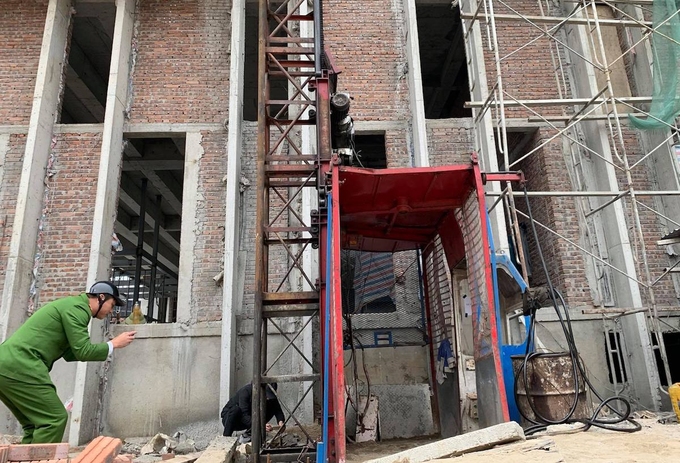 Chiếc thang vận hành lắp đặt từ tháng 9 và đã được kiểm định trước đó. Thang rộng 1,2 m, dài gần 4 m, chạy bằng hệ thống mô tơ điện, dùng để vận chuyển công nhân hoặc vật liệu lên xuống. Nếu mất điện bất ngờ thì thang tự dừng.
