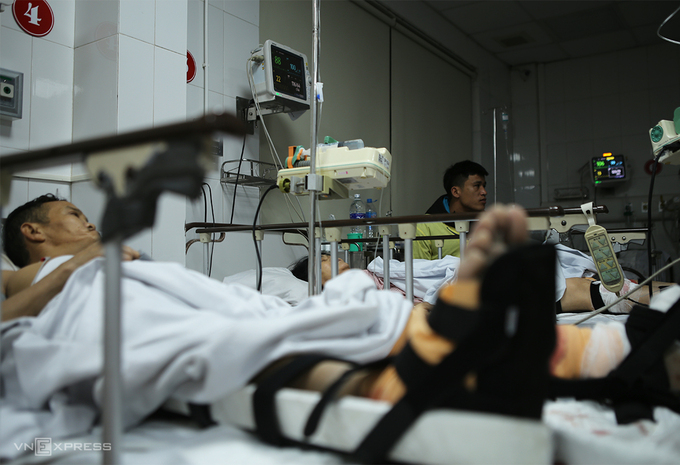 Theo bác sĩ Phạm Gia Trung, Khoa Tổng hợp (Bệnh viện 115), trong số 9 nạn nhân đang cấp cứu, một công nhân bị chấn thương nặng ở vùng cột sống phải chuyển qua bệnh viện tuyến tỉnh điều trị, 8 người còn đa chấn thương nặng song không ai bị đe dọa tính mạng.