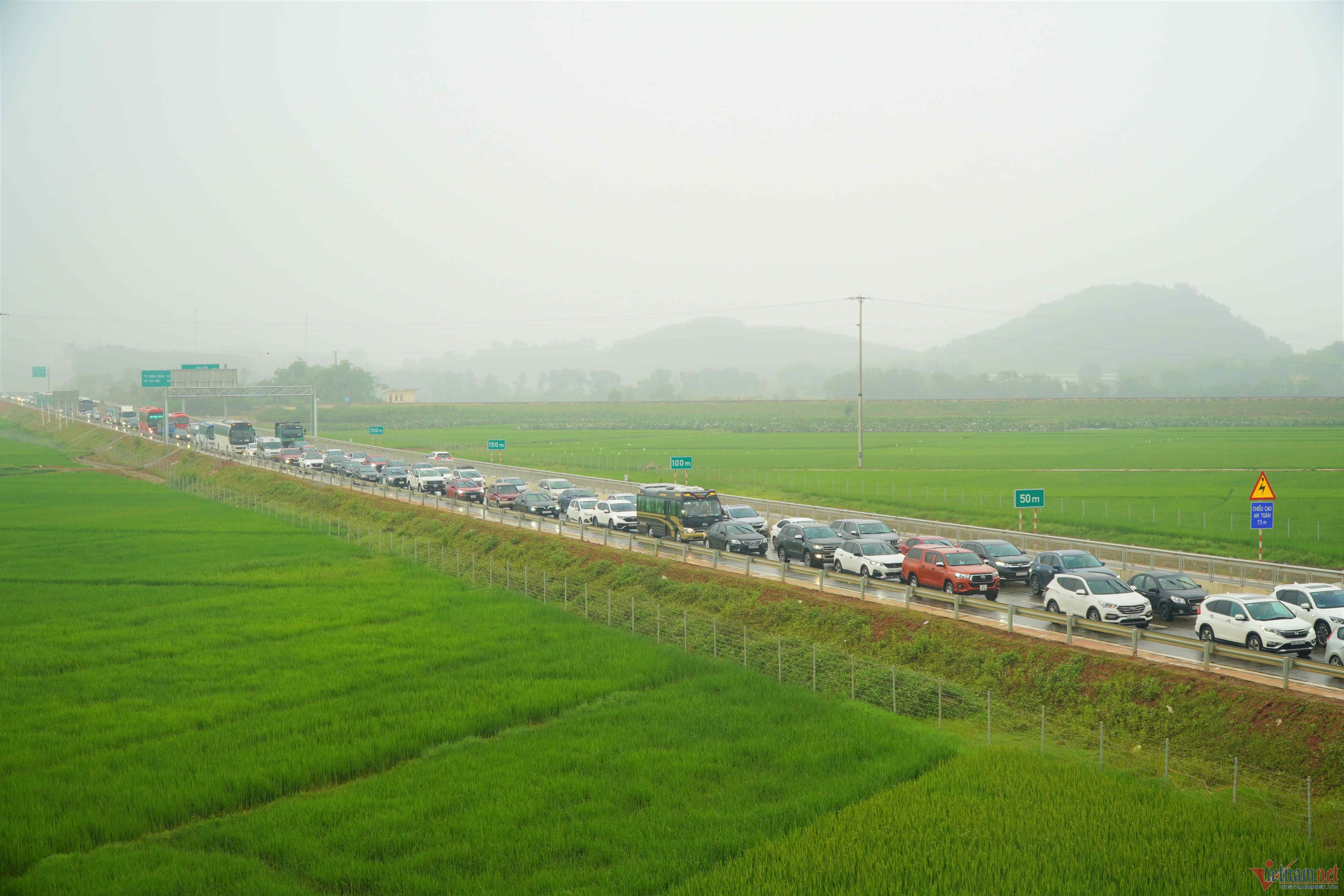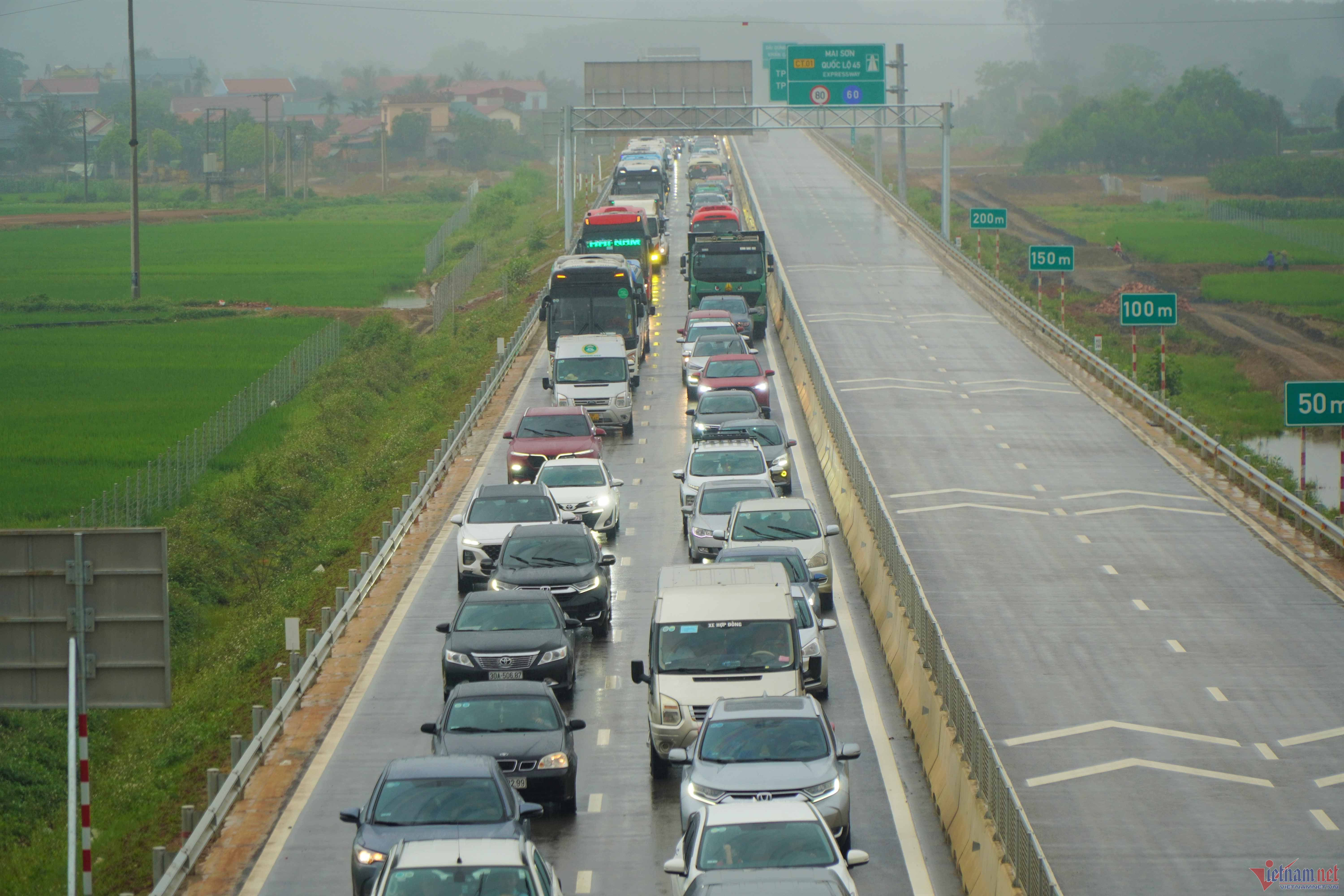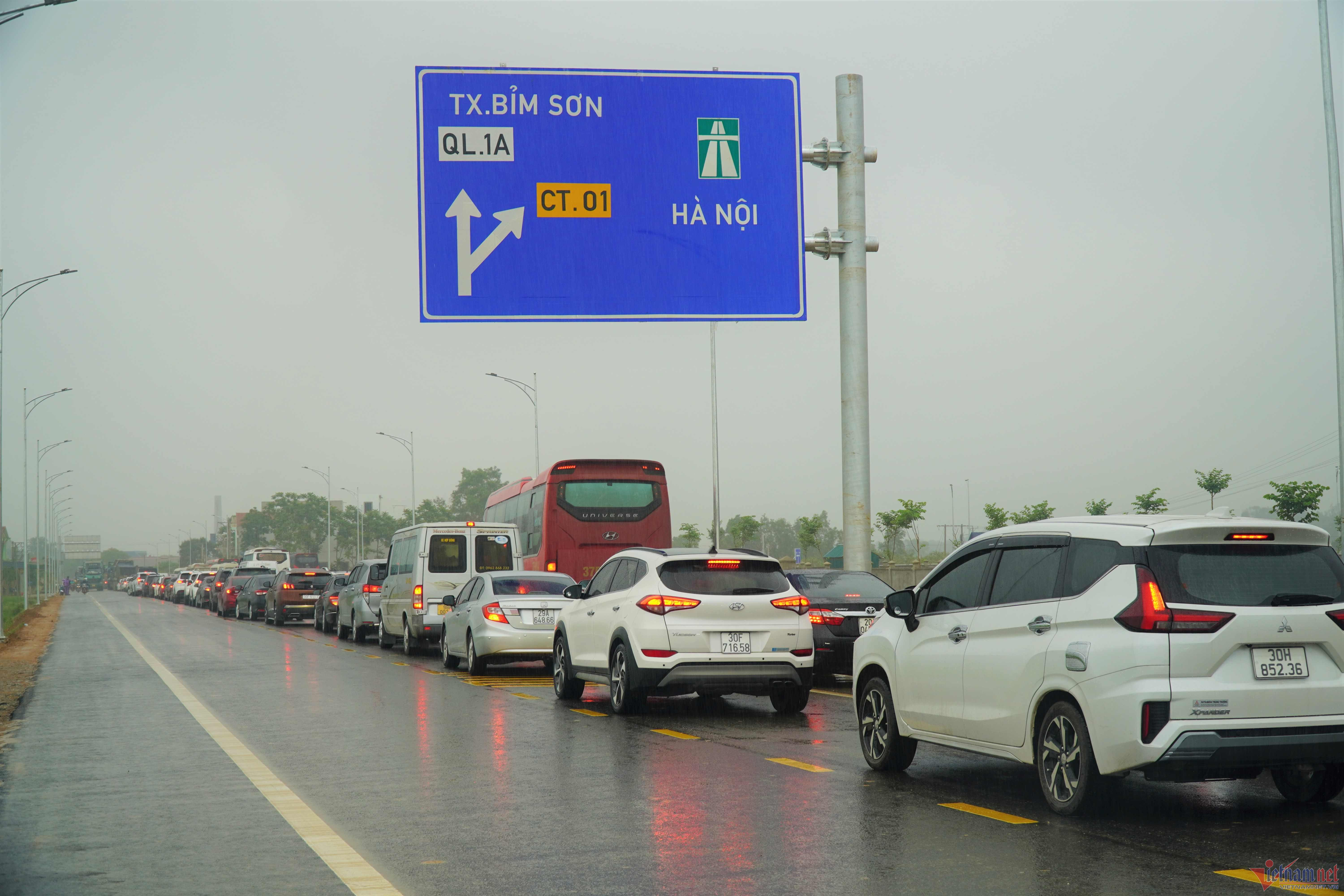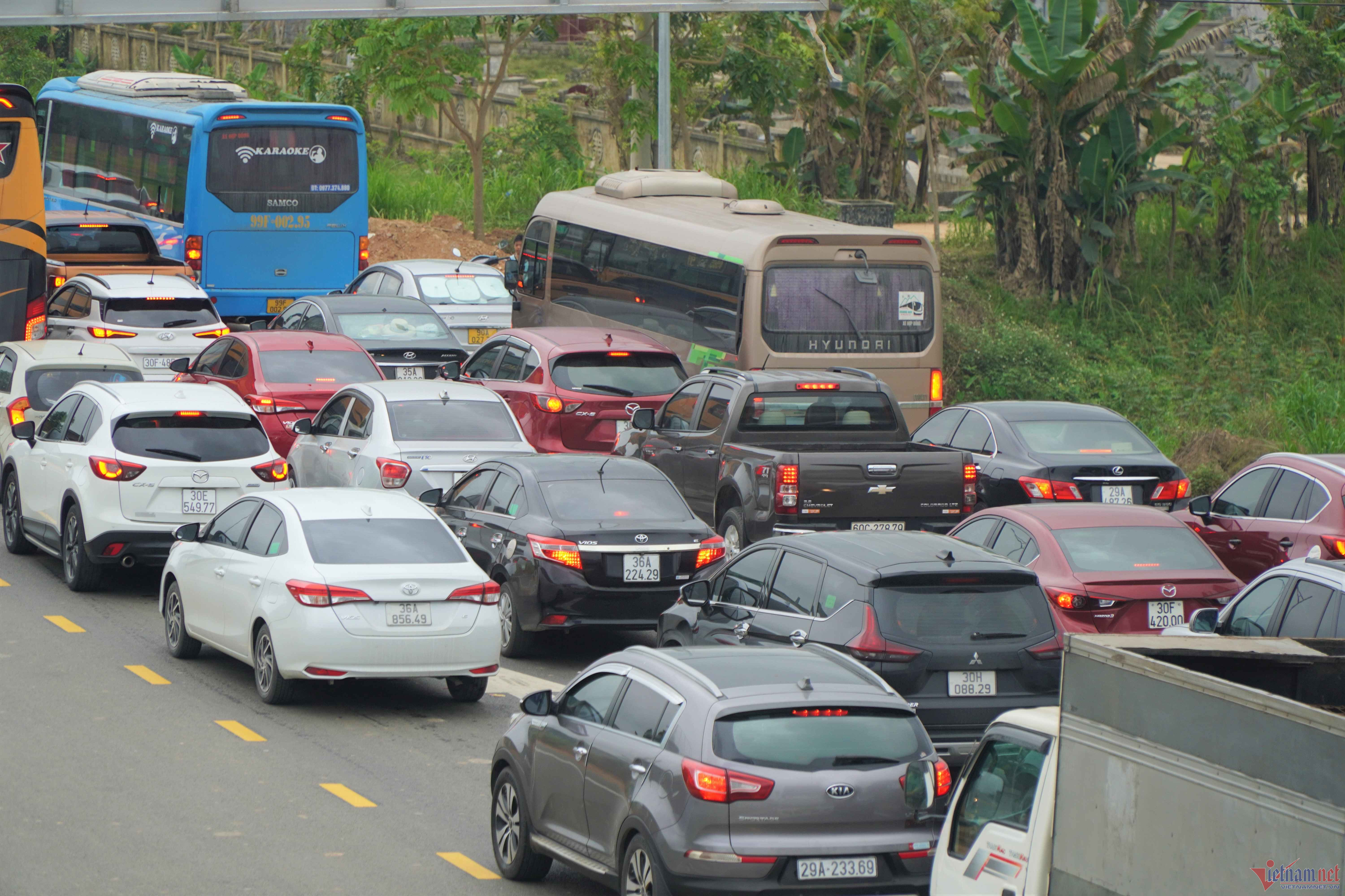 Các phương tiện ùn tắc cục bộ ở đầu nút ra và nút giao nhau với đường QL 217B, phải nhích từng chút một kéo dài suốt nhiều giờ. Đến 11h, lượng xe ô tô đổ về ngày một đông, tình trạng ùn tắc thêm nghiêm trọng.