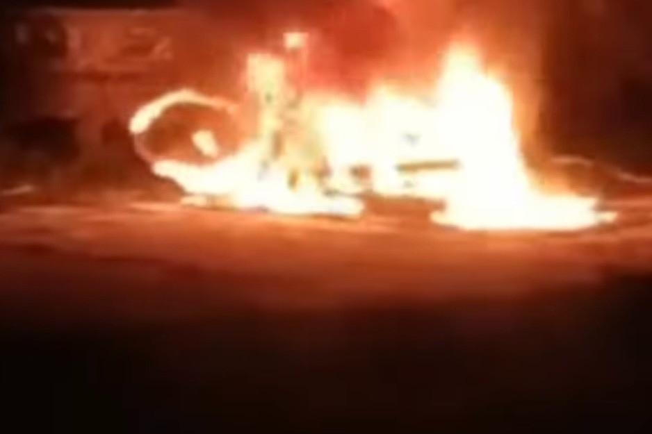 Lúc này, N.H.P. bất ngờ mở nắp bình xăng rồi lấy bật lửa tự đốt xe của mình. Một chiến sĩ CSGT nắm tay P. để giật bật lửa nhưng không kịp.