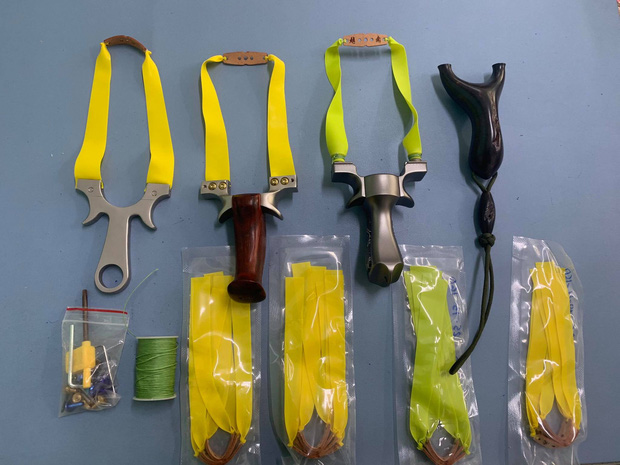 Khám xét, công an thu 4 ná bằng kim loại, 4 dây cao su, 1 bộ dụng cụ dùng để tháo lắp ná, 1 cuộn chỉ dùng để treo mục tiêu, 1 viên bị sắt hình tròn, 1 thùng xốp có nhiều lỗ thủng xuyên hai mặt và 1 hũ nhựa đựng 50 viên bi sắt. Công an đã cho K. thực nghiệm lại hiện trường, ghi nhận khoảng cách từ căn hộ của K. tới nhà của ông T. là khoảng 80-100m.