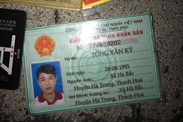 Sau khi bỏ trốn khỏi hiện trường, nam thanh niên đánh rơi chiếc ví kèm theo CMND mang tên Tống Văn Kỳ (SN 1995), hộ khẩu thường trú xã Hà Bắc, huyện Hà Trung, Thanh Hóa.