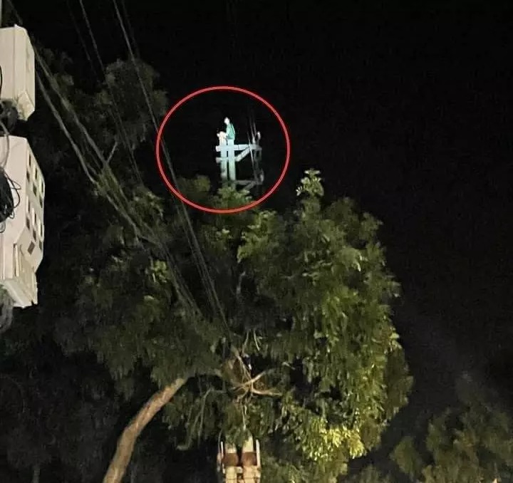 29/10/2022 17:23Thanh niên tâm thần trốn viện, trèo lên đỉnh cột điện 'ngồi chơi'