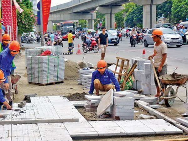 Thực trạng các đơn vị thi công vỉa hè, hạ ngầm tại nhiều tuyến đường dịp sát Tết Nguyên đán khiến người dân bức xúc. Hai tháng trở lại đây, nhiều quận nội thành đồng loạt lát đá vỉa hè khiến người và phương tiện tham gia giao thông bị ảnh hưởng, gây ùn tắc ở một số tuyến.