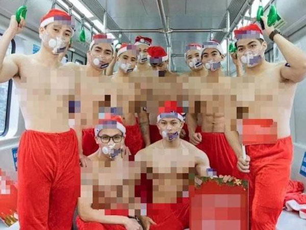 Sáng 11/12, mạng xã hội lan truyền một số bức ảnh một nhóm thanh niên cởi trần trên tàu điện Cát Linh-Hà Đông. Nhóm người này mặc trang phục ông già Noel, cởi trần và cầm theo banner quảng cáo cho một chuỗi cửa hàng.