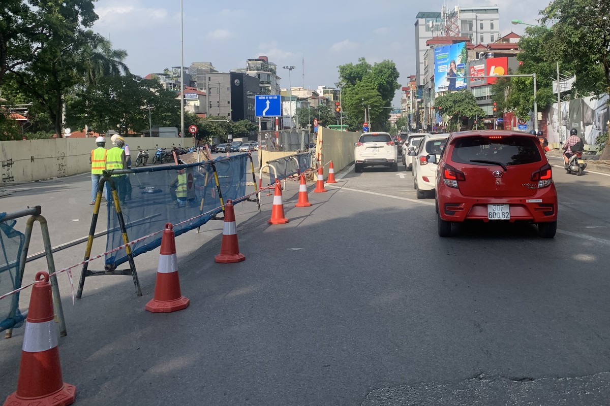 Ghi nhận của PV, khu vực đang thi công công trình giếng đứng của ga ngầm S9 thuộc dự án đường sắt đô thị Nhổn - ga Hà Nội đang được tháo dỡ dần sau 3 năm rào chắn phục vụ thi công tại khu vực ngã từ Kim Mã - Núi Trúc. Mặt đường được thảm lại, các phương tiện có thể đi thẳng khi đi qua tuyến đường này mà không cần phải đi theo đường uốn lượn như trước.