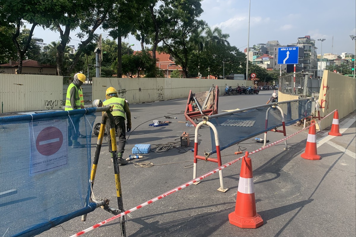 Đại diện ban Quản lý đường sắt đô thị Hà Nội (MRB) nêu lý do tháo rào là do một phần công trình của giếng đứng tại khu vực giữa nhà ga S9 và S10 đã thi công xong. "Phần công trình đã thi công xong, chúng tôi tiến hành tháo rào, trải thảm nhựa và mở rộng phần đường cho các phương tiện có thể lưu thông dễ dàng hơn, không còn phải đi theo đường uốn lượn", vị này nói.