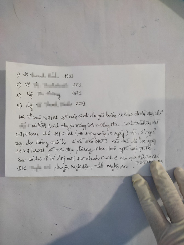 Lực lượng trực chốt hỏi thăm sức khỏe thì được biết 4 mẹ con là người Nghi Lộc (Nghệ An) vào H.Trảng Bom, Đồng Nai để làm thuê. Tuy nhiên, do dịch COVID-19 kéo dài làm 4 mẹ con thất nghiệp, không có tiền trang trải cuộc sống nên quyết định về quê bằng xe đạp. Hành trình của họ bắt đầu từ ngày 9/7 đến ngày 19/7 thì về đến huyện Ninh Phước.