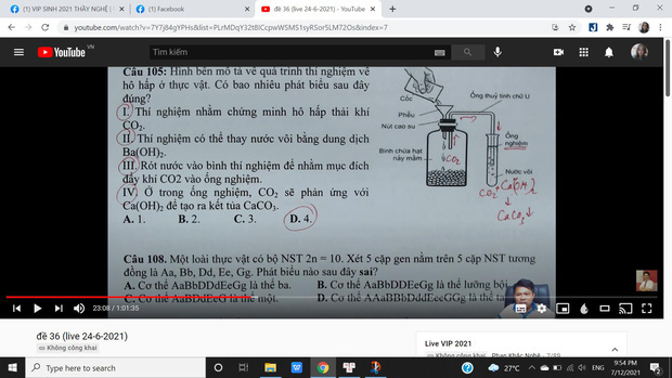 Xin khẳng định, có một số câu trúng y nguyên (đây là những câu được ghi rõ trong SGK, ở mức nhận biết kiến thức), một số câu thì có nội hàm tương tự nhau; một số câu thì khi thầy Nghệ giảng bài và mở rộng kiến thức thì nội dung thầy Nghệ mở rộng bao phủ phần kiến thức đó nó có phần gần gần giống với nội dung kiến thức mà câu hỏi đặt ra trong đề thi (Xin thưa: đề thi cũng phát triển từ nội dung SGK, thầy Nghệ giảng bài cũng phát triển kiến thức sách giáo khoa, hai nội dung ấy tất nhiên phải giống nhau). Thầy H. có băn khoăn 3 hình vẽ sao mà giống nhau thế. Xin thưa, hình vẽ về thực hành hô hấp của thực vật thì đó là hình của SGK, thầy cô nào cũng dạy và đề thi liên tục có 1 câu thực hành, mà năm 2020 đã thi về thực hành động vật thì năm 2021 đương nhiên sẽ suy ra khả năng cao là thi về thực hành thực vật (thực hành thực vật, có duy nhất 2 bài trong SGK, trong đó 1 bài đã thi, vậy năm nay đương nhiên thi bài còn lại (hình này) là chắc rồi).