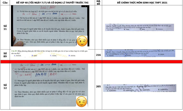 Trước đó, hình ảnh đối chiếu sự giống nhau giữa đề tổng ôn và đề chính thức của Bộ GD-ĐT như sau: