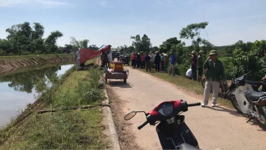 Theo đó, vào khoảng 1 giờ sáng 6-6, trong lúc đi qua đoạn kênh N1 chảy qua địa phận xã Cẩm Duệ, người dân phát hiện một chiếc xe máy hiệu Wave Alpha màu trắng mang BKS: 38H4–22x.xx nằm bên bờ kênh, bên cạnh đó là một đôi dép nam giới với dấu vết trượt dài trên mặt đất.